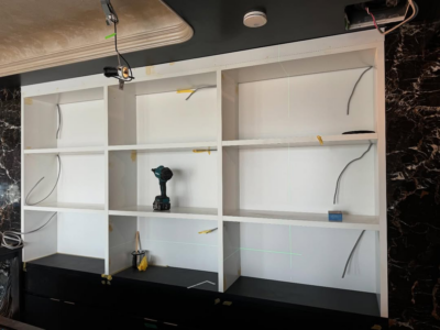 【内装施工事例】什器へのダイノックシート仕上げ|3M ME-2024で高級感ある内装演出を実現