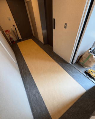 今回は、共用部の廊下に長尺シートをデザイン貼りで施工しました✨
