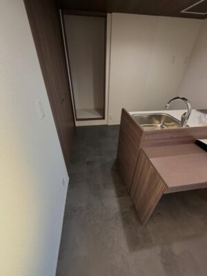 施工後はダークトーンの床材に変わることで、