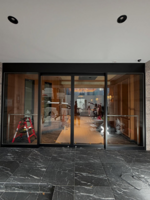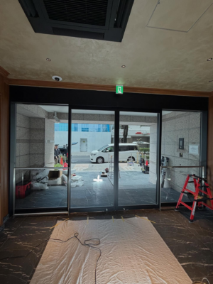 エントランス自動ドアまわりのシート施工を行いましたのでご紹介します!