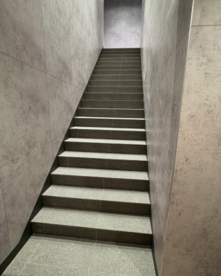 階段と壁の印象にメリハリがあるものの、どこか無機質で物足りなさも。
