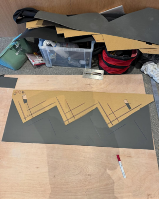 型取りには梱包用のダンボールを使用。